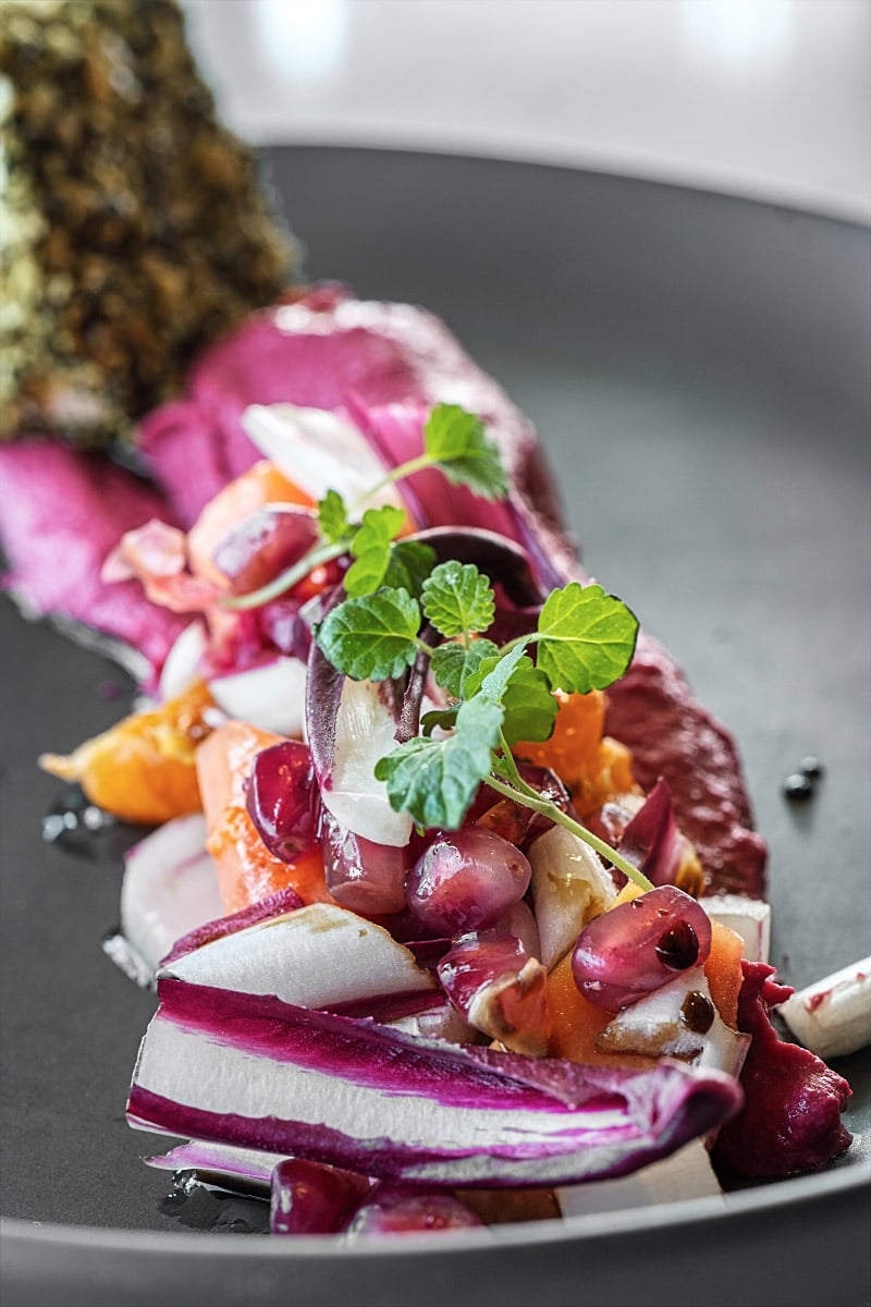 A layered mix of textures and flavours that kept shifting with every bite. Beetroot hummus grounded the dish, giving space for everything else to unfold. Pomegranate and papaya brought freshness, while Radicchio di Treviso added depth and a slight bitterness. Soft goat cheese wrapped in pumpkin seeds pushed things further, with balsamic vinegar and hazelnut oil bringing it all together.