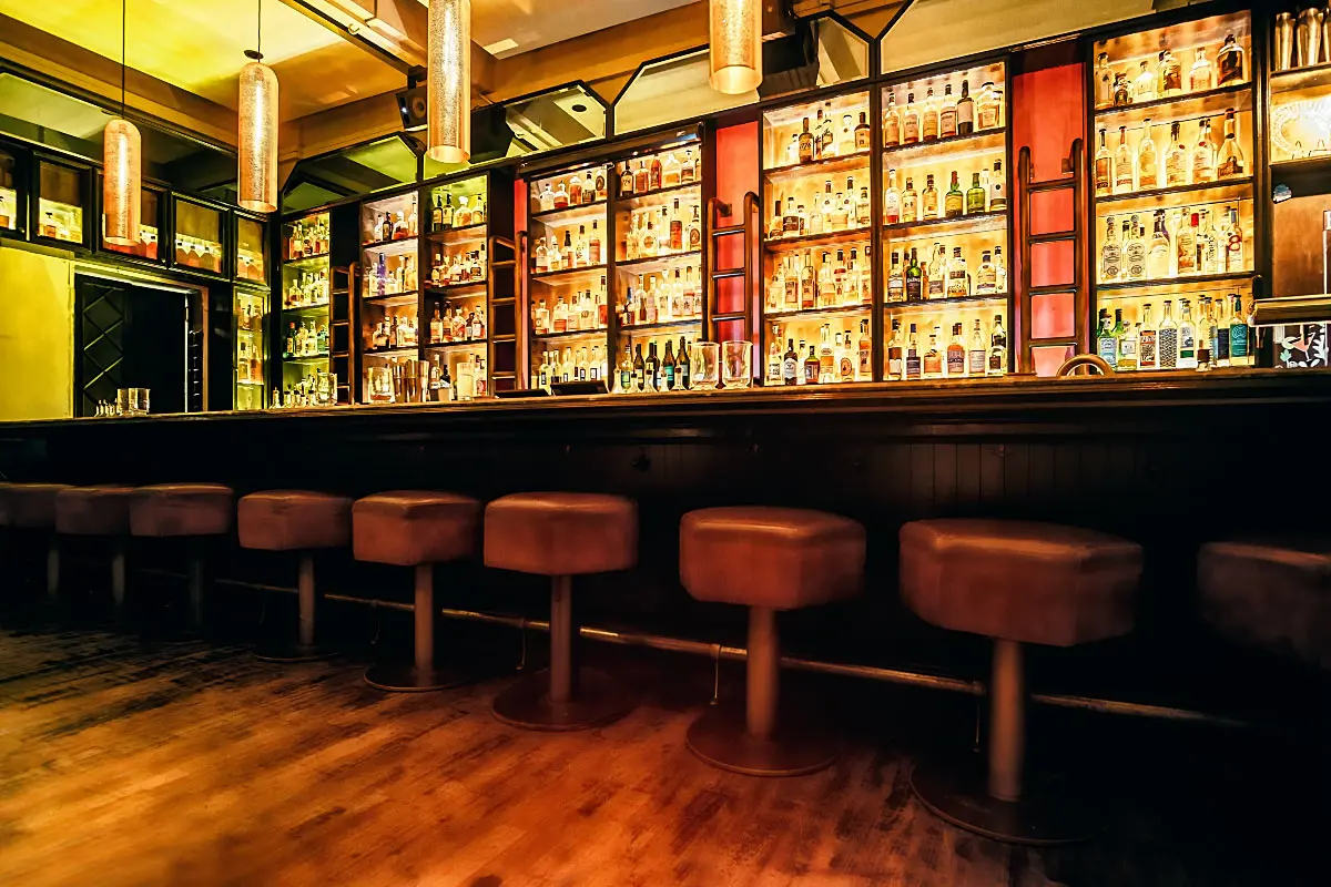 The bar is a centerpiece which sets the ambiance here at 28HKS.