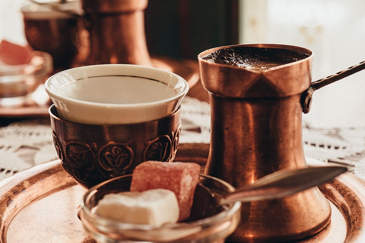 The coffee in Bosnia is typically served in special pot called dzezva with Turkish delight.