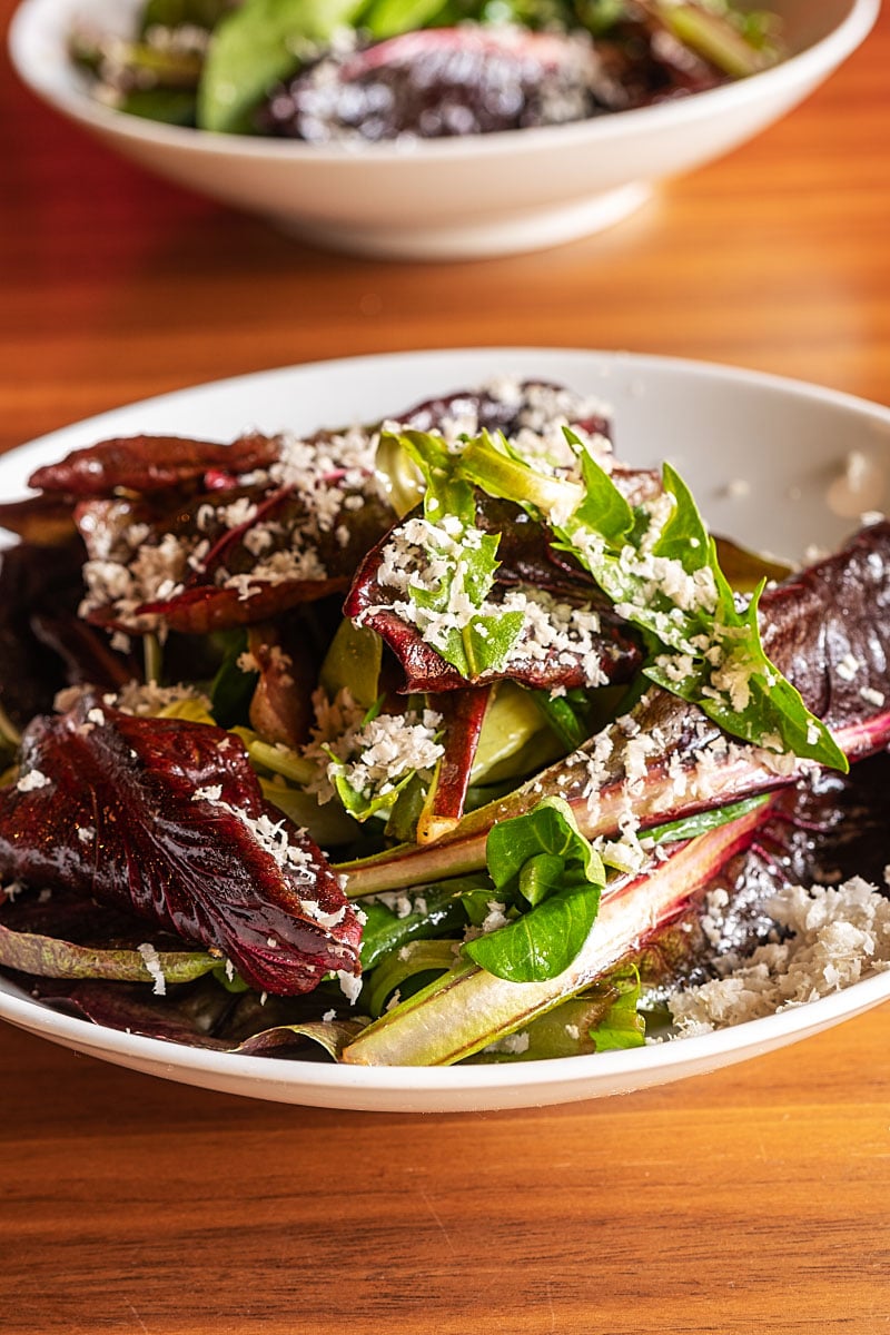 A heartfelt homage to the well-loved heritage spring salad, called dandelion salad, tasted incredible. One can say that a combination of young radicchio and dandelion leaves brought potatoes and bacon back to life. Every element was mended with utmost care. Potato showed its tasty colours in more than one way.